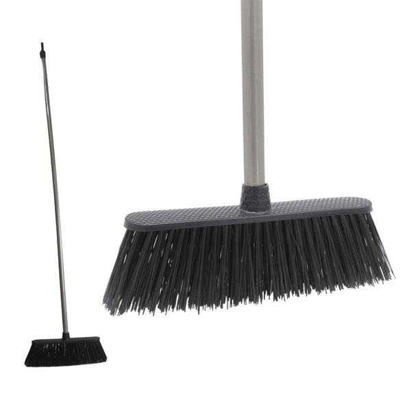Nuestra escoba de Cerdas Duras es perfecta para barrer superficies rústicas, exteriores, ALFOMBRAS y pisos de caucho. Incluye Palo de Madera Forrado.